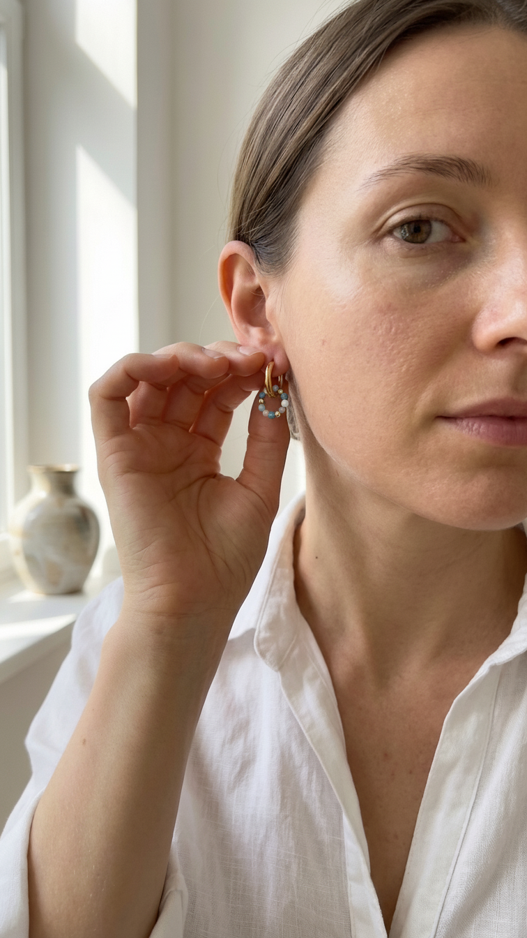Ein zarter, maritimer Ohrschmuck für alle, die natürliche Eleganz und die Farben des Ozeans lieben.