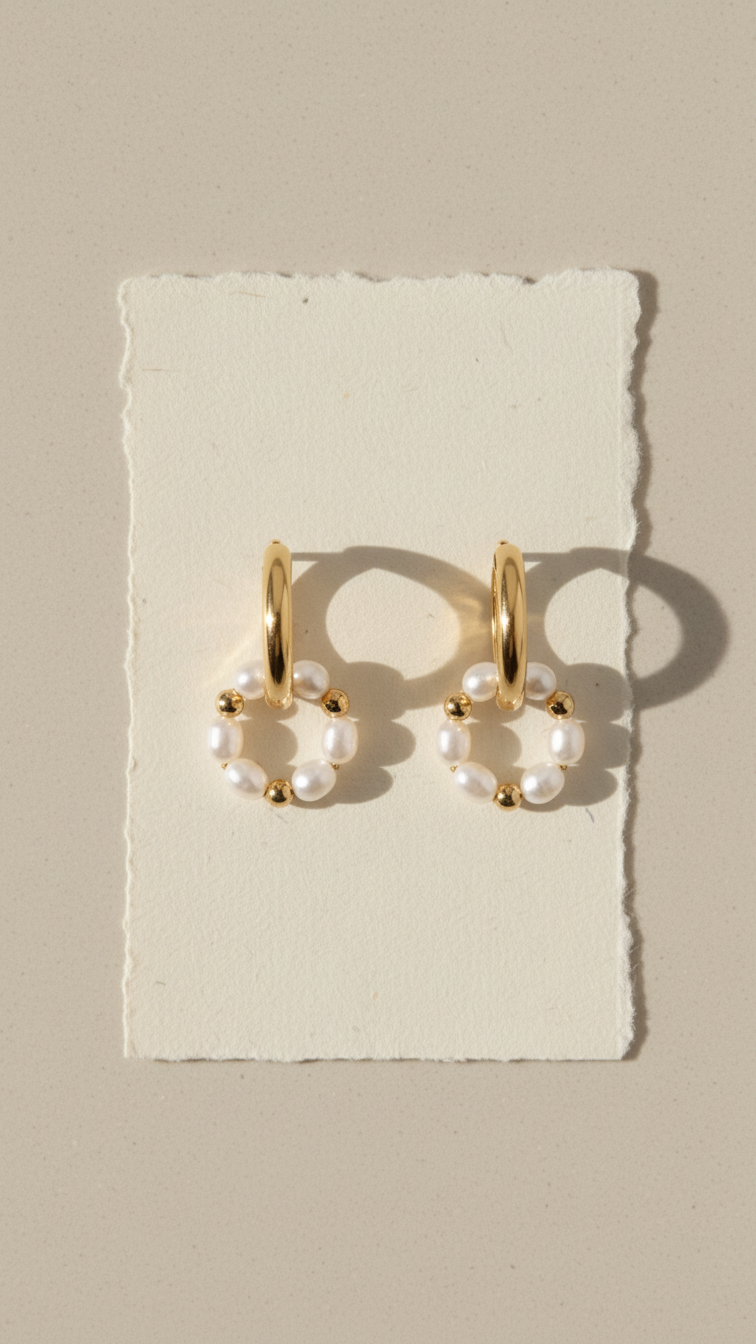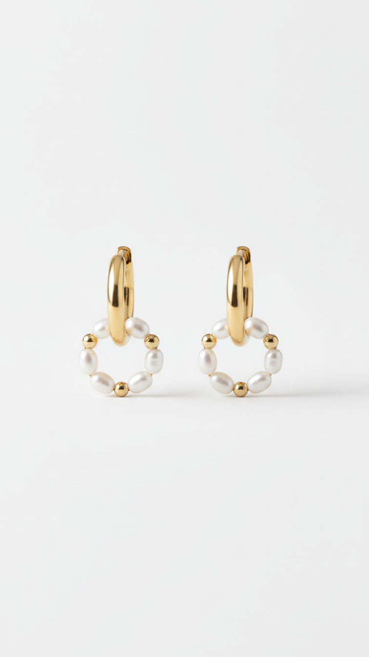 Diese eleganten Creolen vereinen zeitloses Design mit der natürlichen Schönheit von echten Süßwasserperlen. Der filigrane Anhänger aus schimmernden Perlen und goldplattierten Perlen verleiht den Creolen eine zarte, feminine Ausstrahlung.